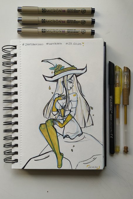 💛[23.Golds]💛 • • • Instagram: instagram.com/hyukiee_ilu?ig… #inktober2020 #witchtober2020 #day23 #golds #oro #witch