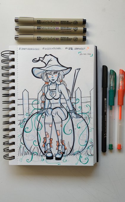 🎃[25.Harvest]🎃 • • • Instagram: instagram.com/hyukiee_ilu?ig… #inktober2020 #witchtober2020 #day25 #harvest #huerto #witch