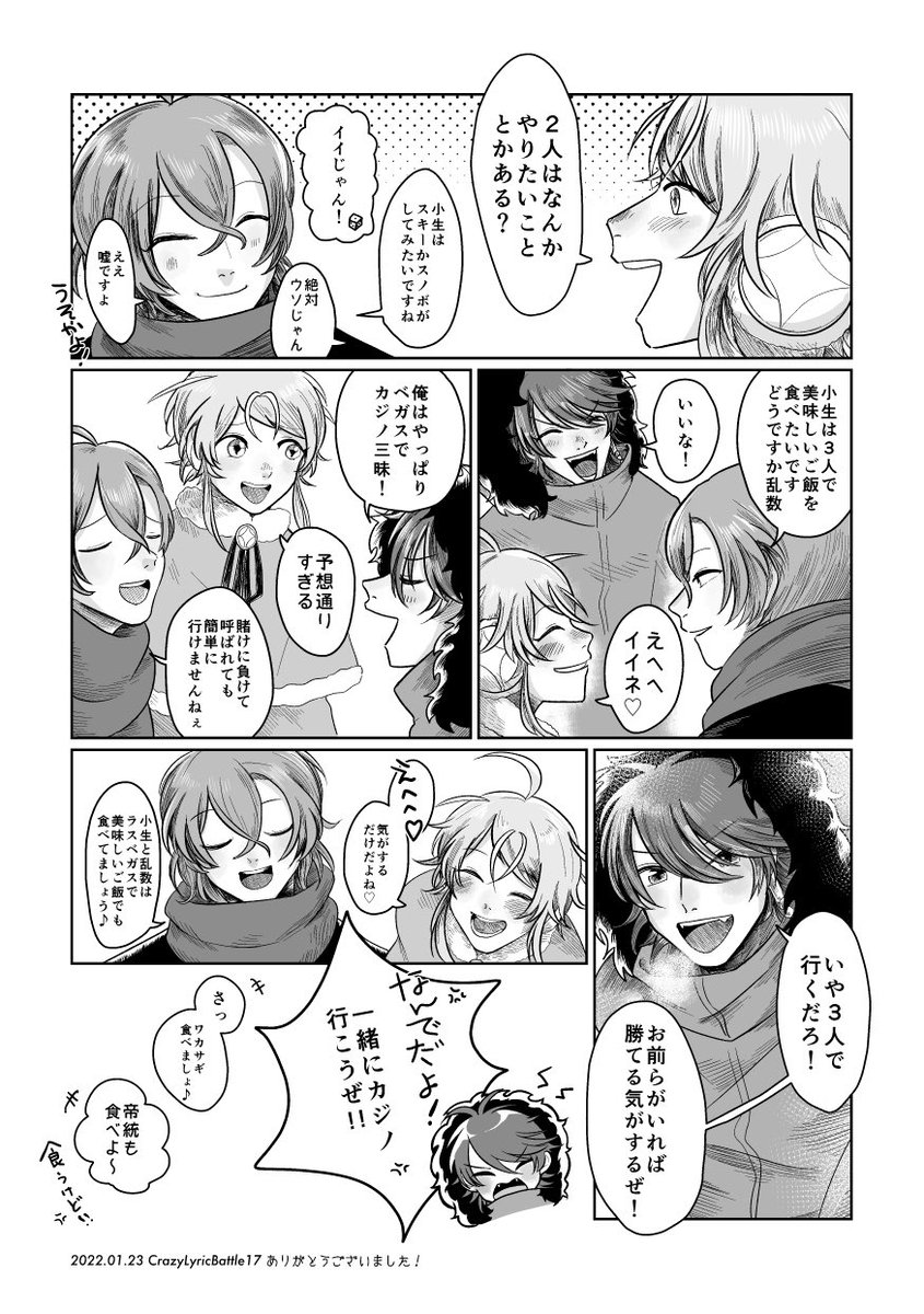 【1/23CLB新刊サンプル】 🎲がぽっせや他ディビと絡む 冬の日常漫画3本立てです❄️ タイトル:DICE WINTER HOLIDAYS A5/44P/全年齢CP無 🐯通販: ecs.toranoana.jp/joshi/ec/item/… ep.1 🎲のクリスマスバイト(1/3)
