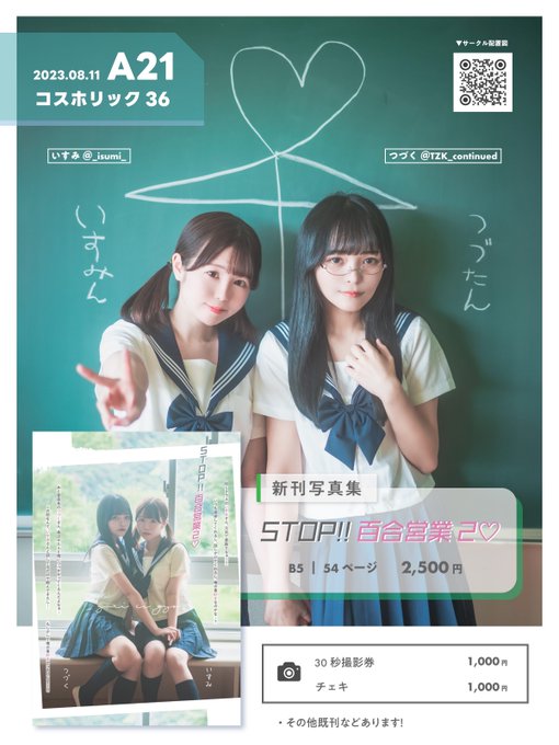 16 80 💛コスホリ・コミケお品書き💛 コスホリとコミケで新刊3冊です!✨ グッズも写真集も頑張って作ったのでお迎えしてもらえたら嬉しいです⸜(๑’ᵕ’๑)⸝💓 コミケは小薬ちゃん(@tamanne_nat) がお手伝いに来てくれます✨ 当日はまひろとみはり二人でお待ちしてます♡ #C102 #C102お品書き #コスホリ 23/08/08 18:24