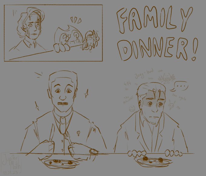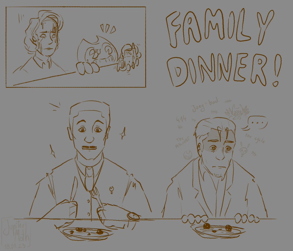 Audrey's family dinner, lazy doodle. Made a mistake to make those two sit next to each other #BATIM #BATDR #Bendy_and_the_ink_machine #Bendy_and_the_dark_revival #Bendyfanart