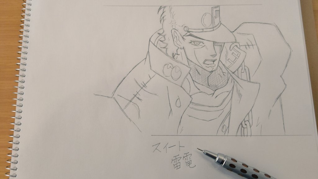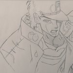 #ジョジョの奇妙な冒険 #承太郎 #イラスト #イラスト好きさんと繋がりたい 承太郎さんムズい( ̄▽ ̄;) てか、ジョジョの絵事態がムズい‼️ヾノ。ÒдÓ)ノシ バンバン!! てか、帽子どうなってるのよ‼️ヾノ。ÒдÓ)ノシ バンバン!! 「おかげさんで……」