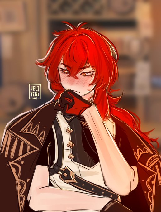 diluc getting shy now from all the birthday greetings he received <33 #ディルック生誕祭2022 #Diluc #rkgk
