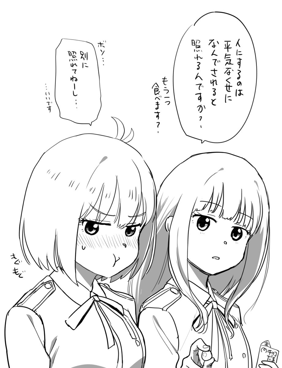 こないだの赤面あーんリクでボツにした絵 自然なポーズが難しくてね…せっかく描いたので供養させて…