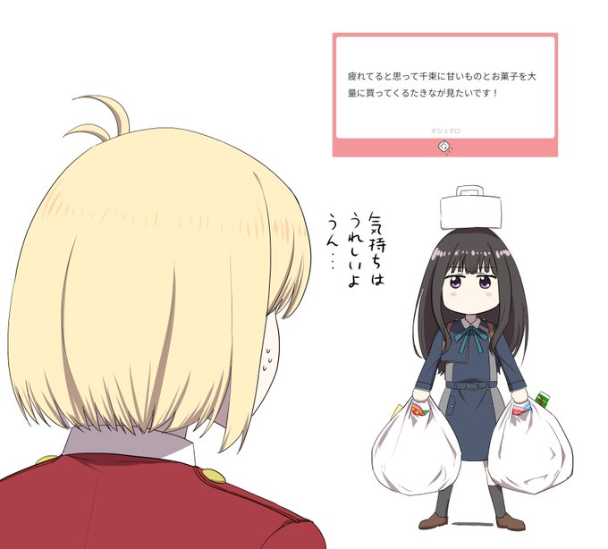 たきなちゃんもあーって言ってたらかわいいな…と思いつつ描きました!2枚目はオマケ的な何かです!!!!!!! リクありがとうございました!!!!!!