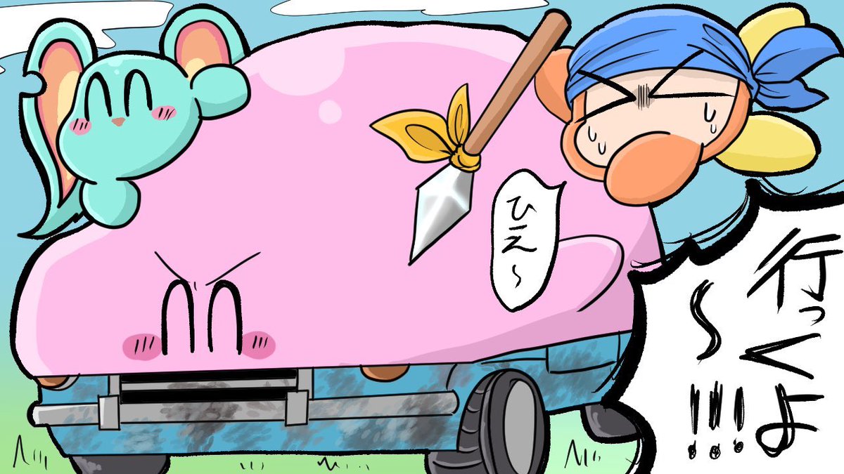 カービィディスカバリー100%記念絵。ほおばり系は一番車が楽しかったです🚗