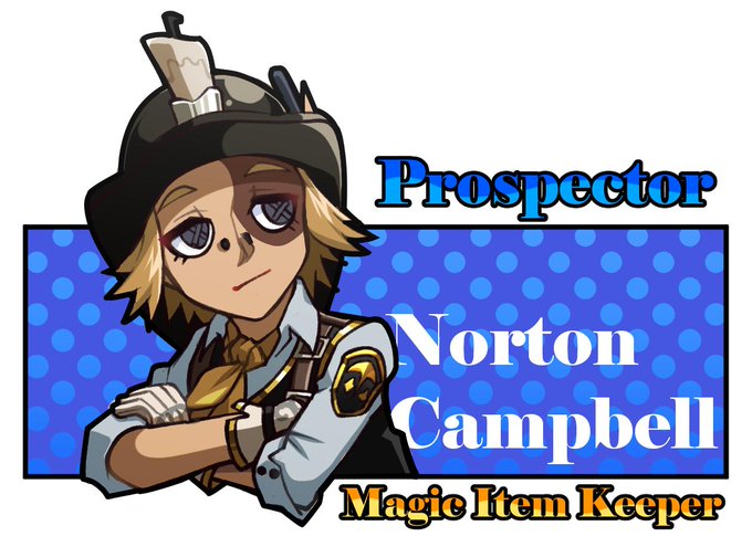 ノートンくんかわかわ。魔物管理者がめちゃくちゃ可愛くてお気に。 文字は何となく入れてみた! 上が「探鉱者」で下が「魔物管理者」(英語版で見てきた) #IdentifyVイラスト #第五人格イラスト