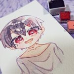 水彩3色縛りで男の子👟♂ #イラスト #創作 #potofu