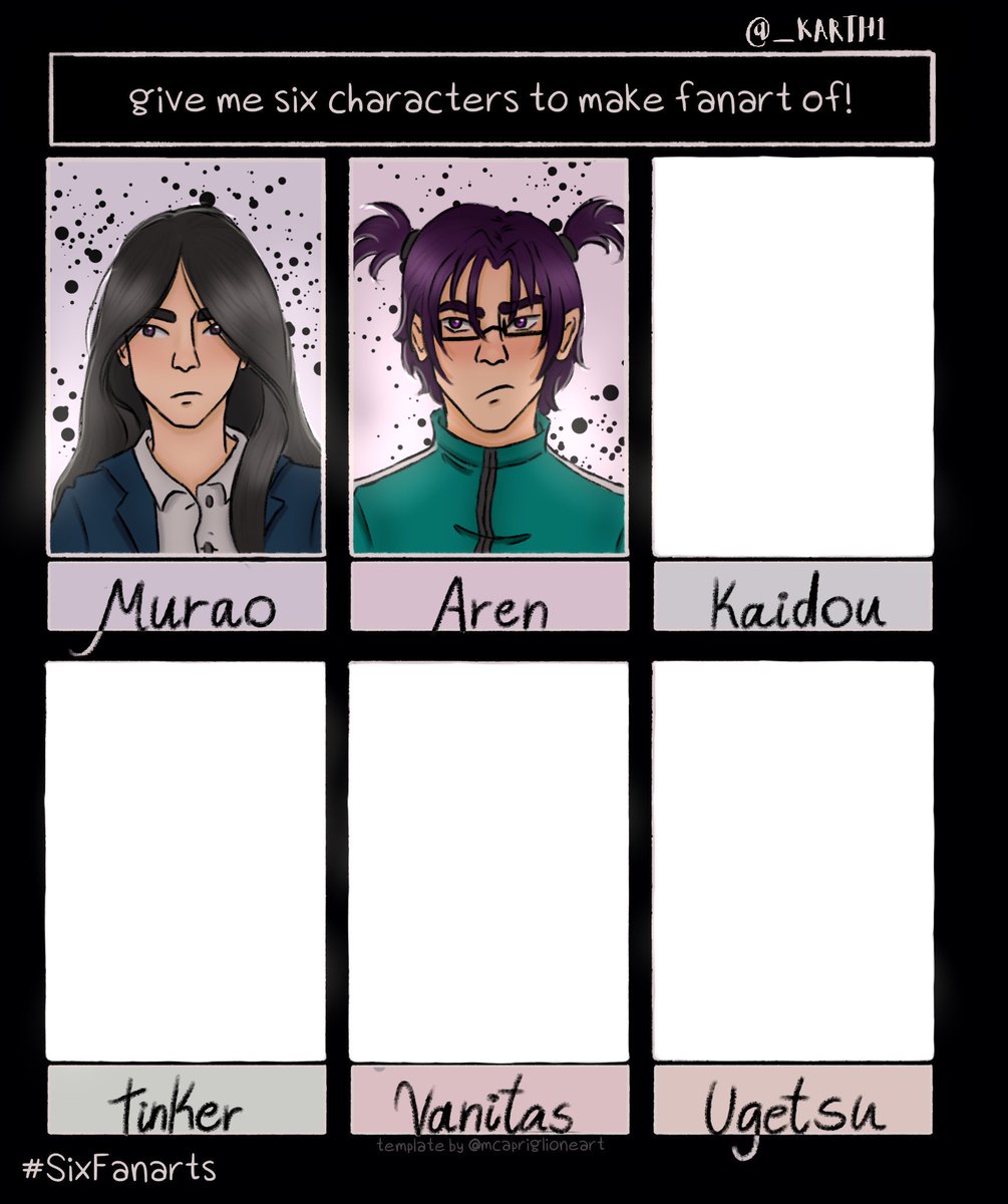 finalmente postando o #SIXFANARTS completo, os meus favoritos foram o aren e o vanitas, e o de vcs??