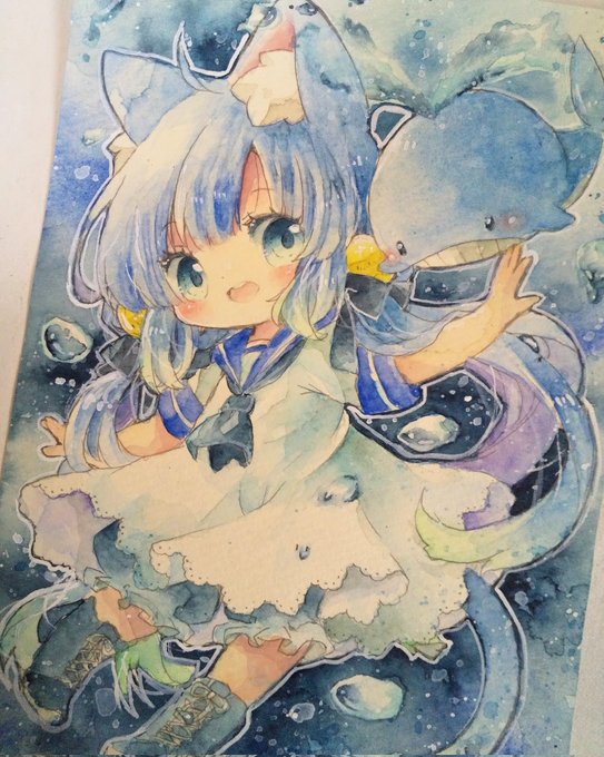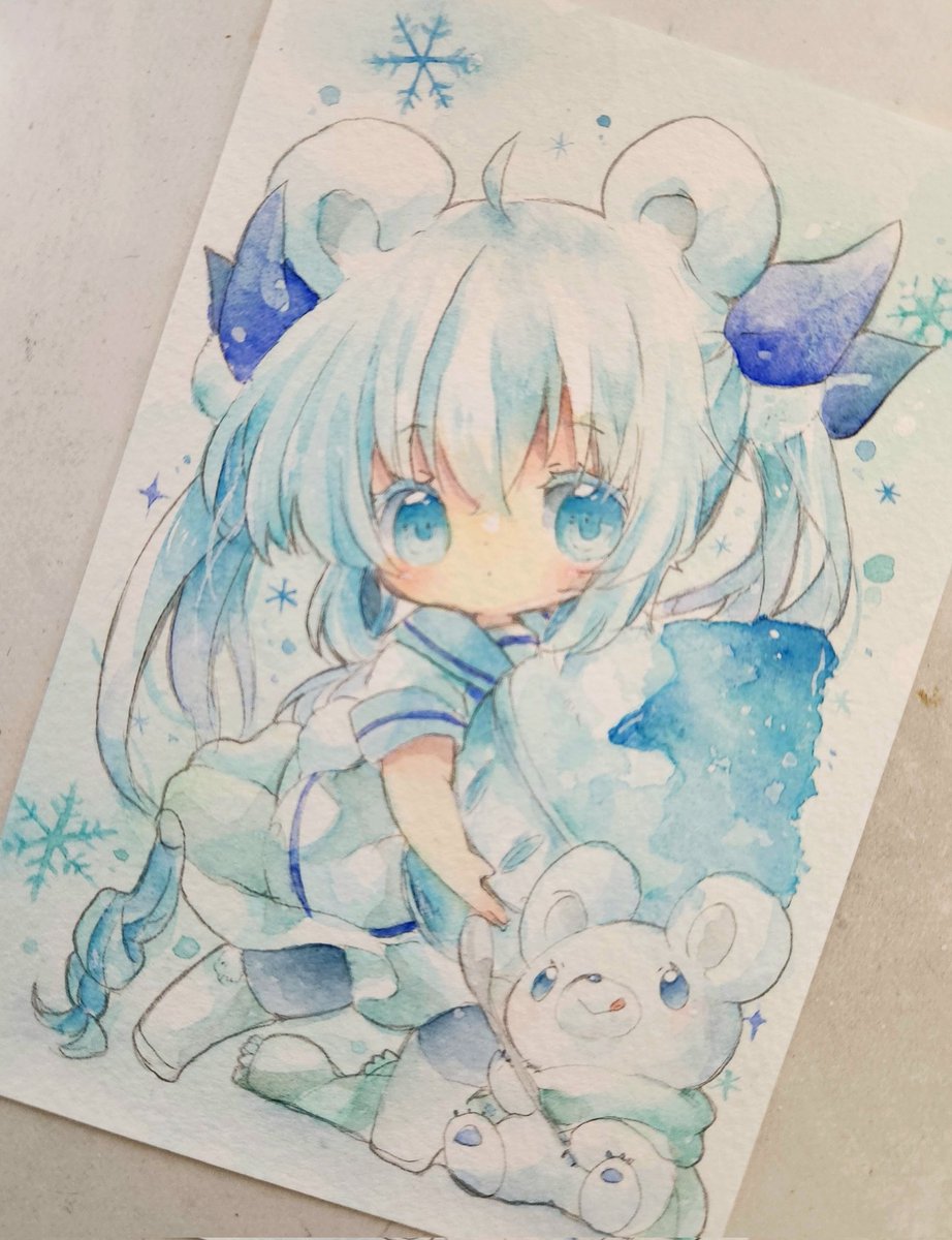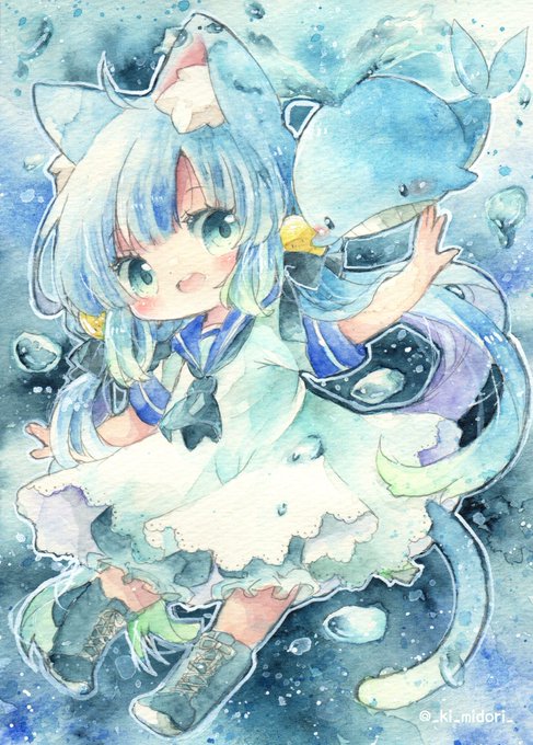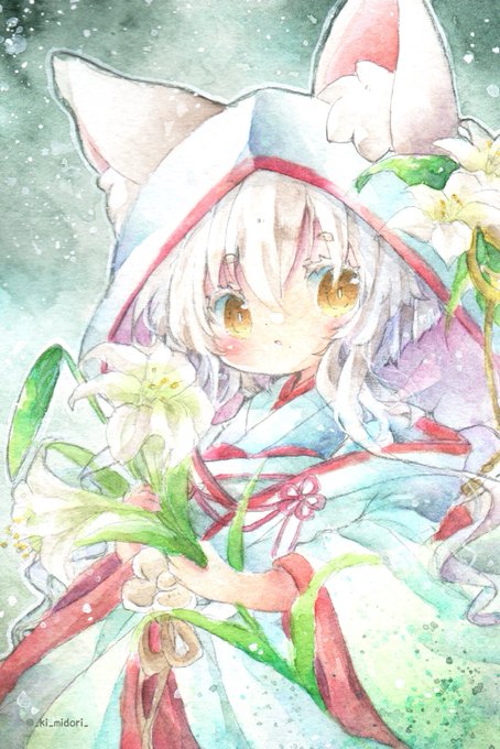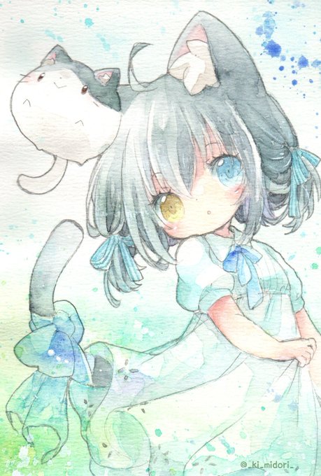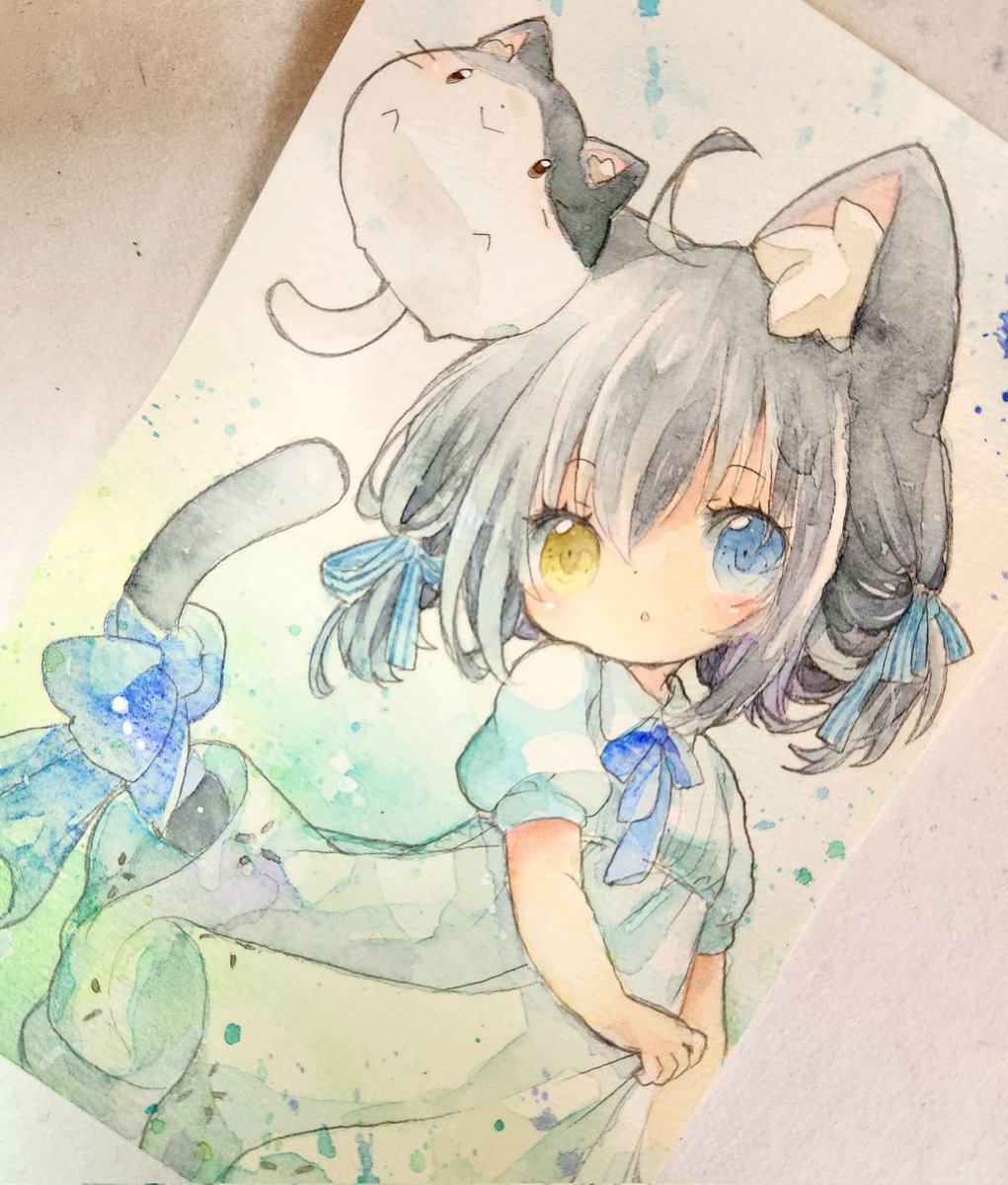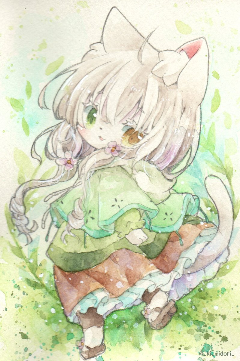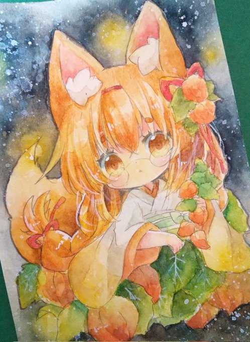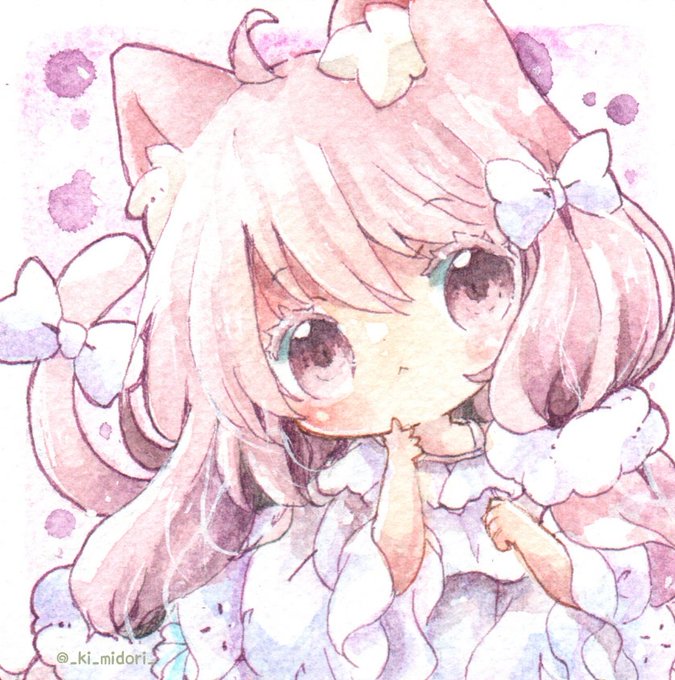 透明水彩でけもみみちゃん★ #作品をみてくださいあわよくばフォローしてください祭