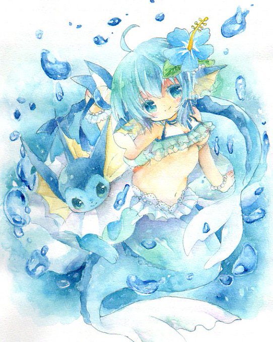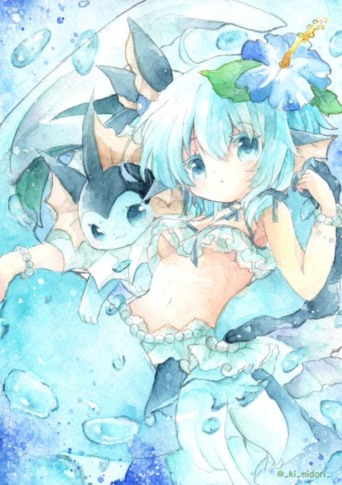 30 211 ポケ擬でうちのこ子瑠湖(シャワーズ♀)を人魚さんな感じで描いたやつ。 だいぶ前の過去絵… わりと気に入ってたのよね。 23/07/16 13:18