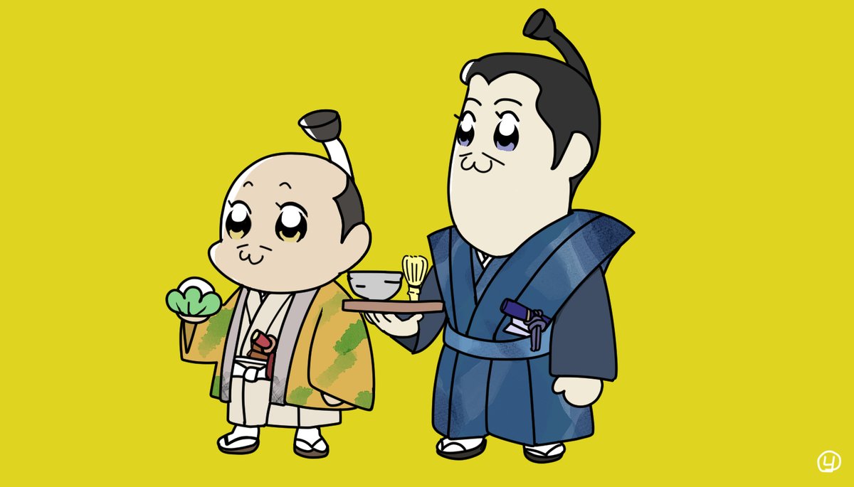 端午の節句ということで、お茶を出す十兵衛と柏餅を食すノッブを描きました #端午の節句 #こどもの日 #柏餅 #麒麟がくる #ポプテピピック #ノッブ #十兵衛 #明智光秀 #織田信長 #大河ドラマ #イラスト #麒麟絵