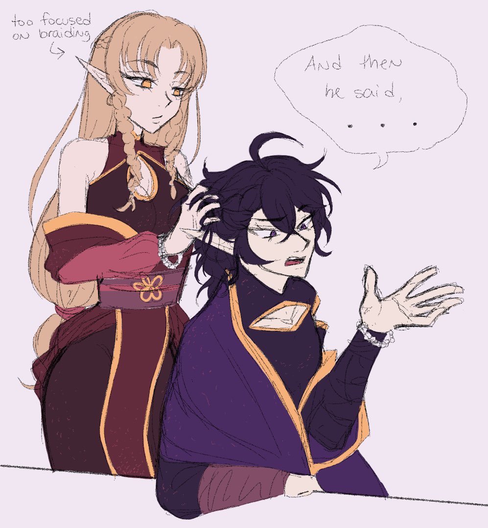 [#dndart #dndcharacter] i come back from war to bring meme art. anyways this is my estp boy with @vertigospirit's entp boy 🤠