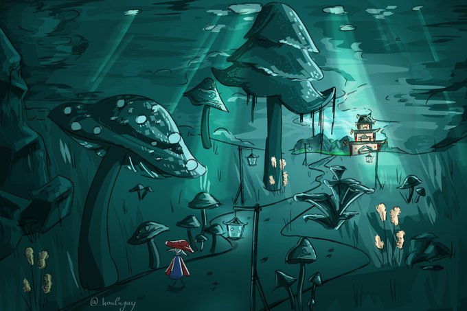 Small mushroom man in a mushroom forest Kinda old attempt at backgrounds lol #georgenotfoundfanart