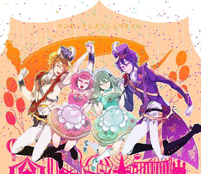 6 23 背景変えたので再掲!! ワンダショ!!🌟🍬🎪🎡🤖🎈 #prsk_FA 遅ればせながら1周年おめでとうございました!! 21/11/11 00:30