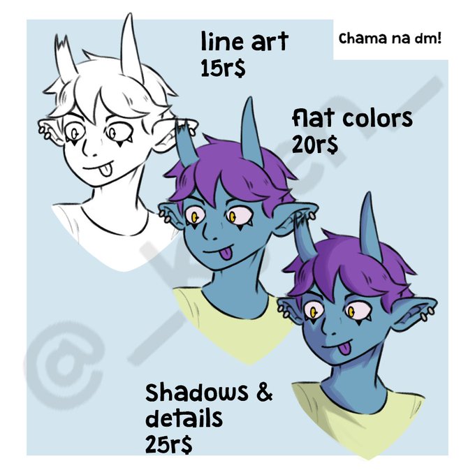 Depois de muito tempo criando coragem, 📢EU ABRI COMISSIONS📢 Quem n tiver dinheiro ou n quiser comprar, um RT já ajuda muito 💙 #comission #comissionsopen #ArtistOnTwitter #art