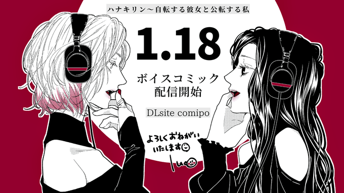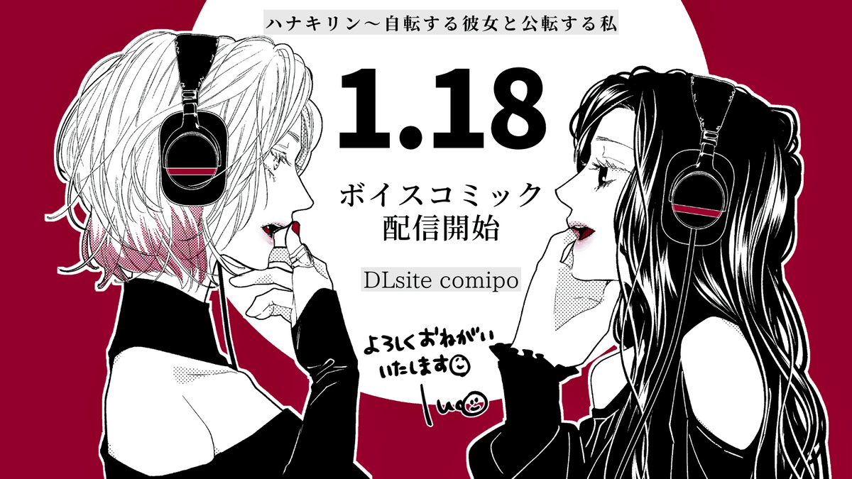 【💜宣伝💐】 連載中の百合漫画『ハナキリン〜自転する彼女と公転する私』1話~3話を、DLsite comipoさんでボイスコミックにしていただきました。 dlsite.com/comic/work/=/p… ぜひ聴いて・読んでいただけたら嬉しいです。よろしくお願いいたします #百合 #百合漫画