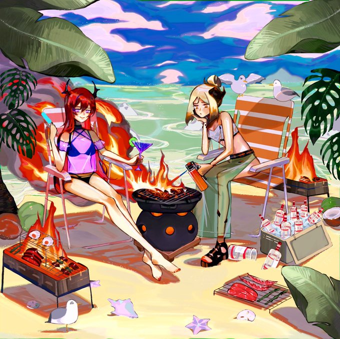 Ifrit and Sutr barbequing contingency 7. 🏖🔥🌊 I always thought these two would sort of get along 👀 #MediBang #Arknights #ArknightsFanArt #arkn #明日方舟 #絵 #イラスト #イラスト好きな人と繋がりたい #FANART #Digital #illustration