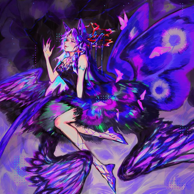 new OC ~ Motifs include wolfsbane, moths, winged insects, and spiders ✨️ #OC #originalart #originalcharacter #illustration #絵描きさんと繋がりたい #イラスト #イラスト好きな人と繋がりたい