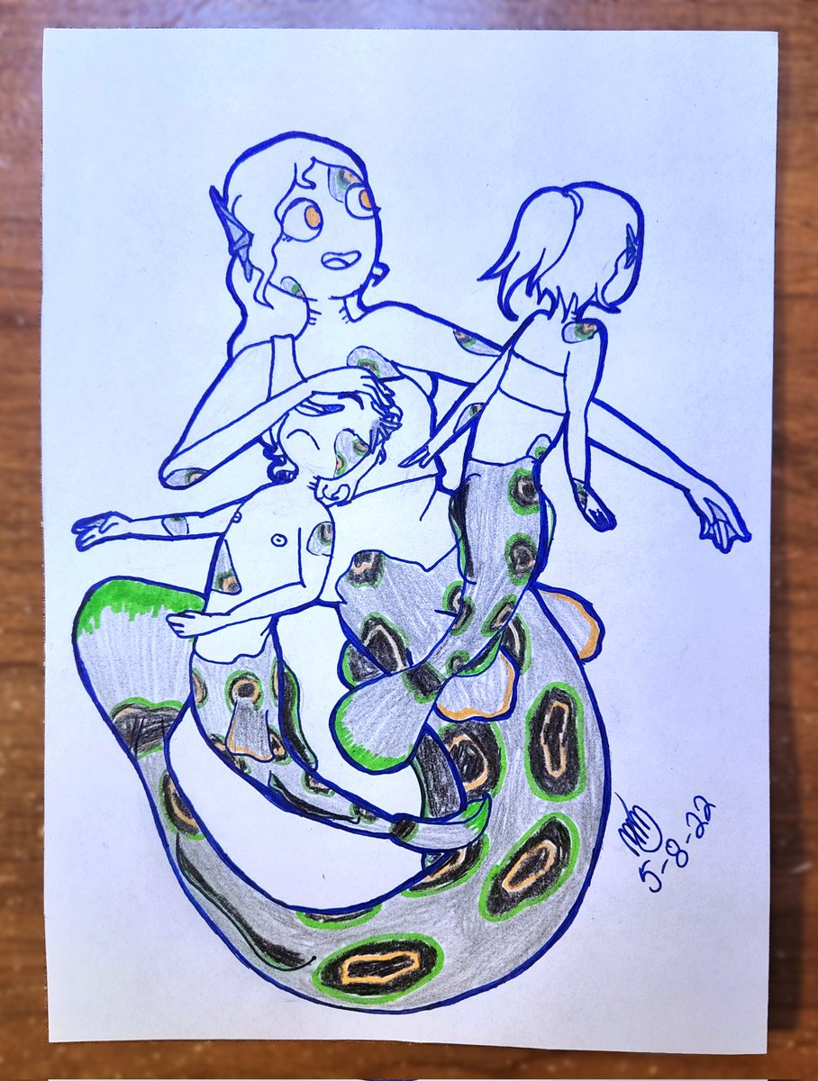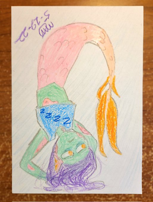 Crayon doodle for today's mermaid! I should play with crayons more its very fun 𓆏 #meadowdoaart #mermay #mermay2022