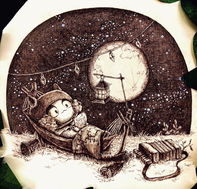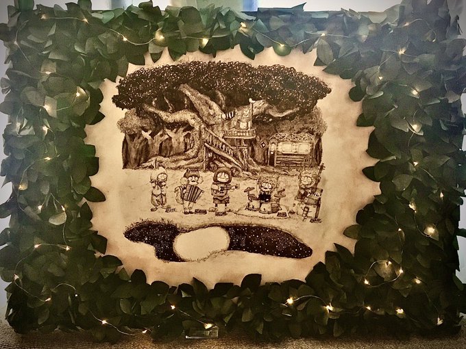 森のガラクタ音楽団 葉っぱは1枚1枚作って、周りにライトを付けた。 大きさはB1 #イラスト #アナログ #ペン画 #ライト #葉っぱ #楽器 #絵描きさんと繋がりたい #絵師さんと繋がりたい