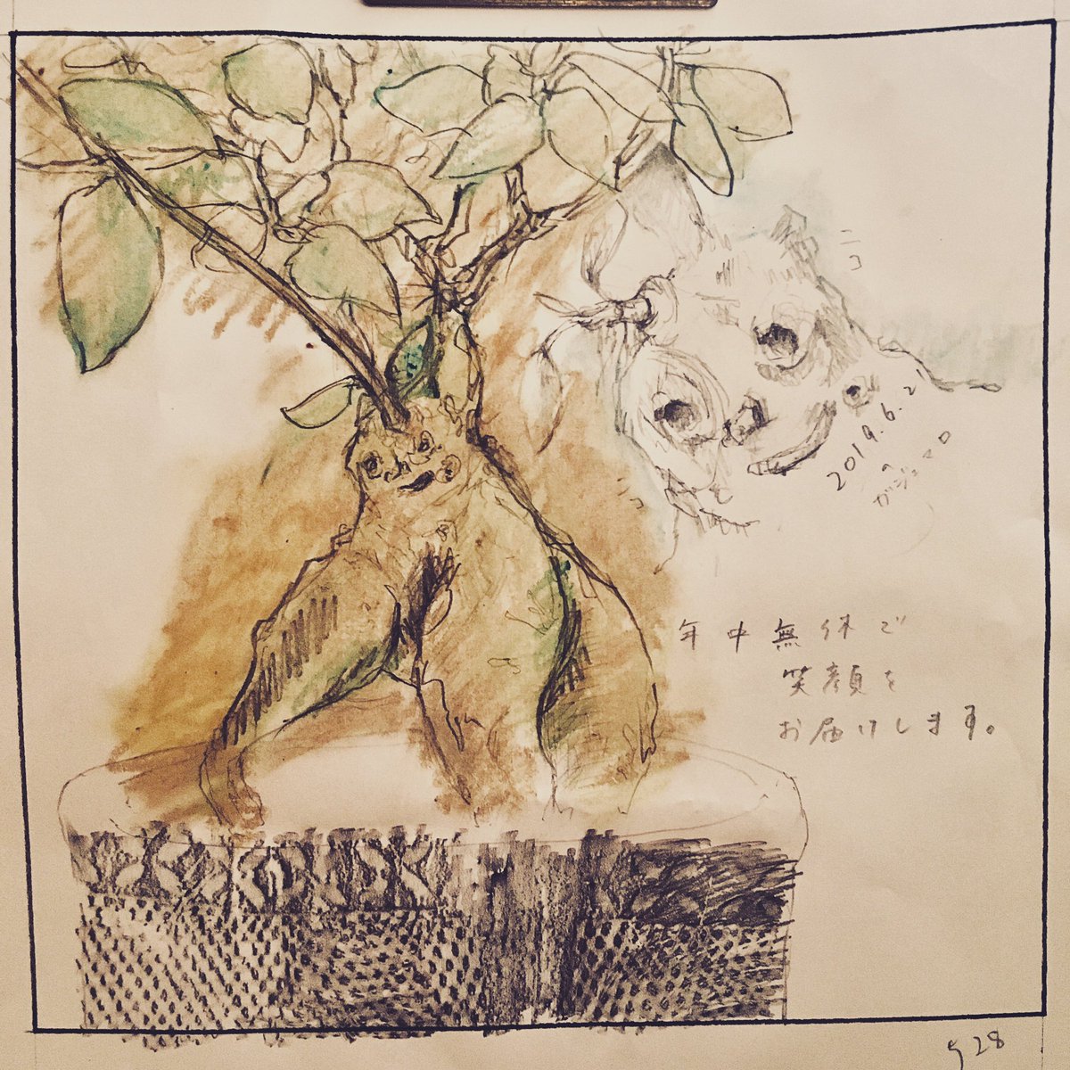 課題でお絵描き。 自分の部屋にあるガジュマル(名前はガジュマロ)には顔があって、植物には見えないのです。 ついでにちょんまげも生えてたり、、。 #メイドインボク #イラスト #絵 #絵描きさんと繋がりたい #イラスト好きな人と繋がりたい #アナログ絵描きさんと繋がりたい #植物 #版画 #ペン画