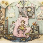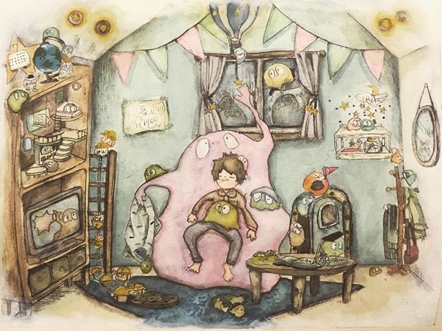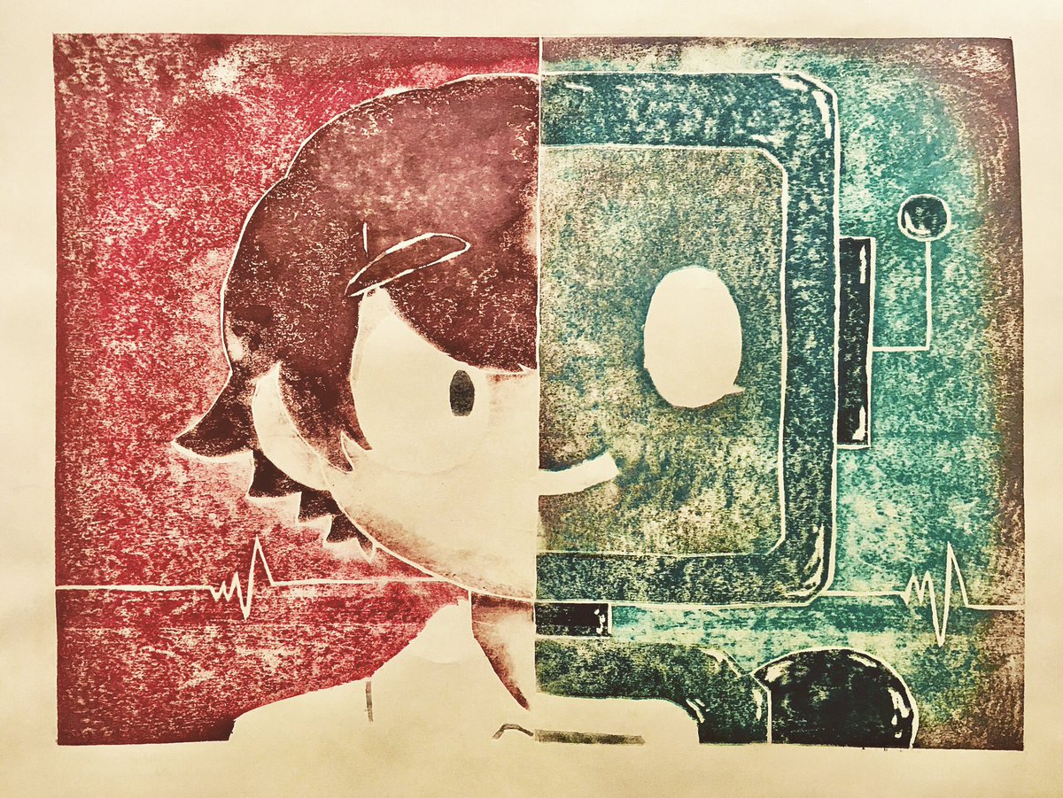 初めて版画に触れた時の 昔に作ったやつ 今と変わらないとこもあったり変わったとこもあったり #メイドインボク #イラスト #絵 #版画 #絵描きさんと繋がりたい #イラスト好きな人と繋がりたい #アナログ絵描きさんと繋がりたい #水彩