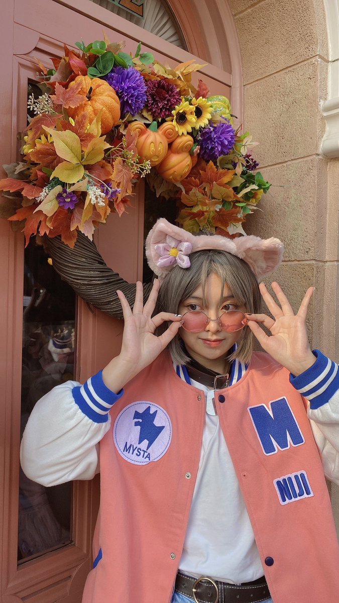 Mysta Rias in Disneyland🧡🥹 . The Linabell headband just goes soooo well with this outfit🫶🏽(and linabell is a fox & detective omg) #mystacosplay #MystaRias #Luxiem