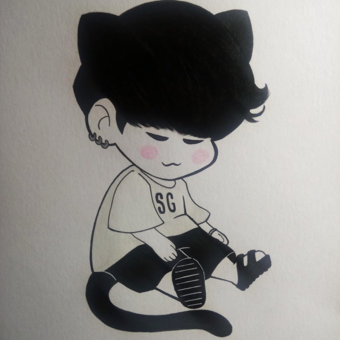 A lidol Meowgi to try to cheer your weekend (´・ω・`)♥✨ One of the freebies that you'll find with your comms #btsfanart #bts #illustration #lilmeowmeow #meowngi #minyoongi #suga #agustd #ink #watercolor #drawing #armypedia #kpop #kpopfanart #marinablutkynaillustration @BTS_twt