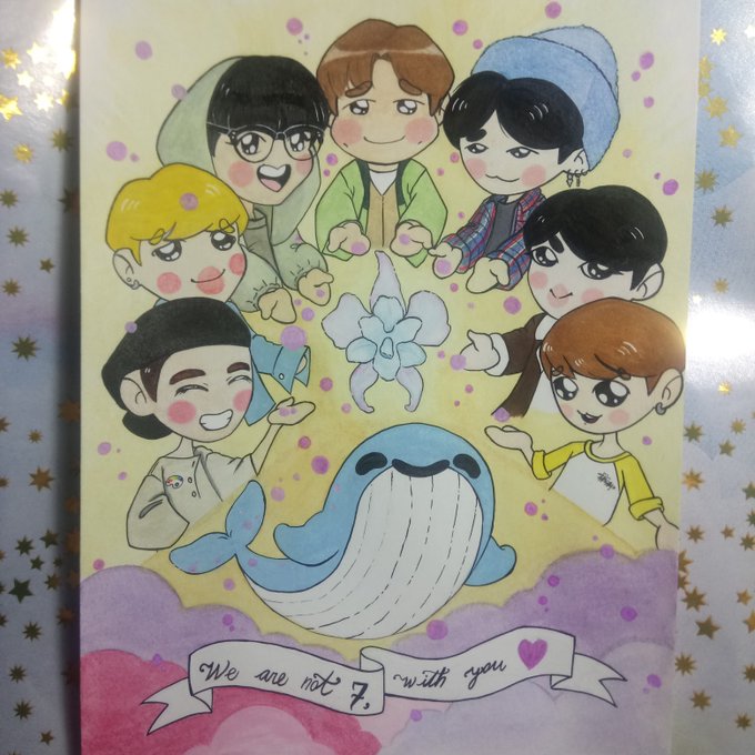 The lonely whale is now surrounded by purple lights Thank you for all this light, thank you for existing my dears, happy 7th anniversary💜 #wearebulletprooftheeternalmv #btsanniversary #btsfanart #BTS #WeAreBulletproofTheEternal #wearenotsevenwithyou #smeraldoflower #whalien52