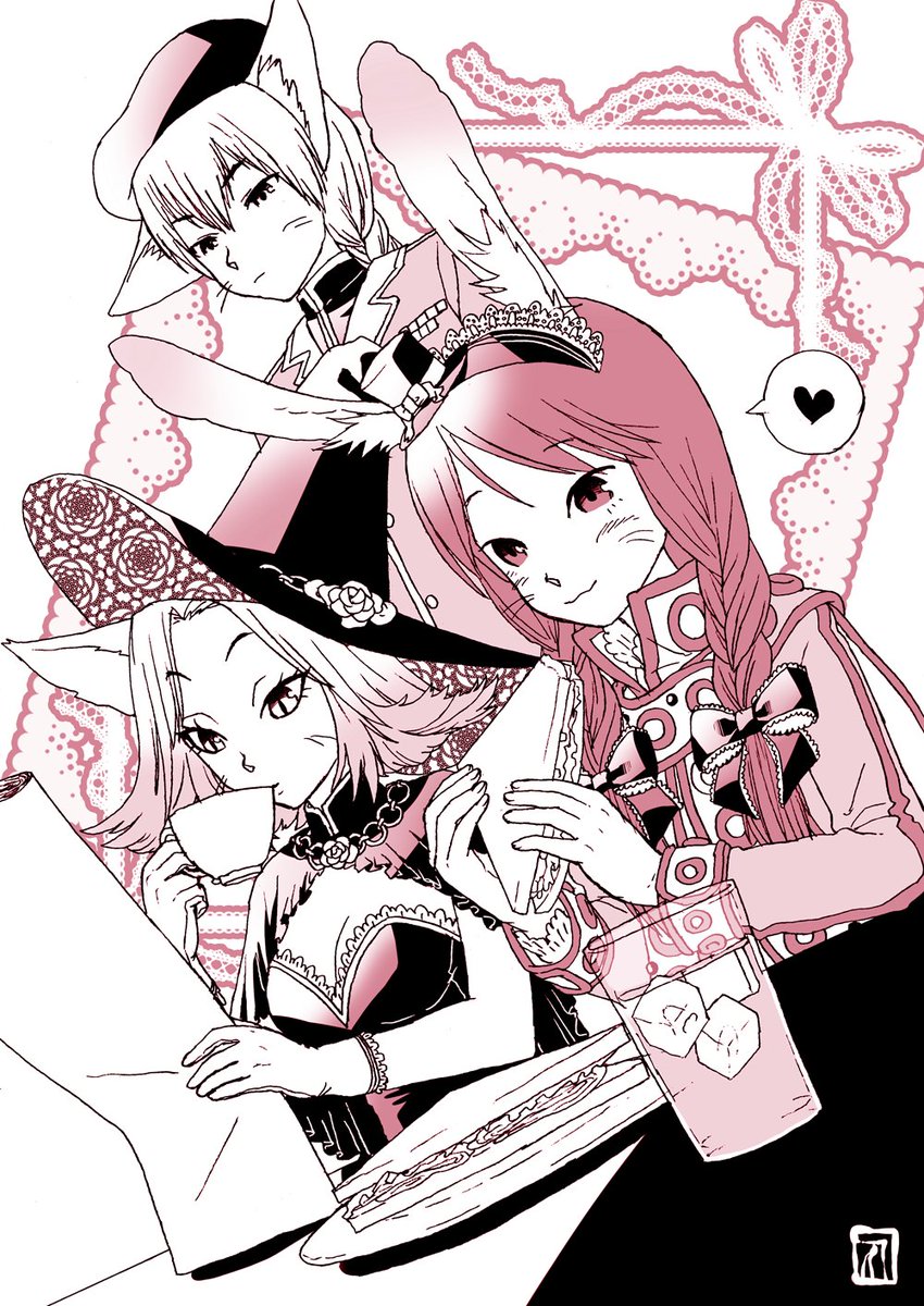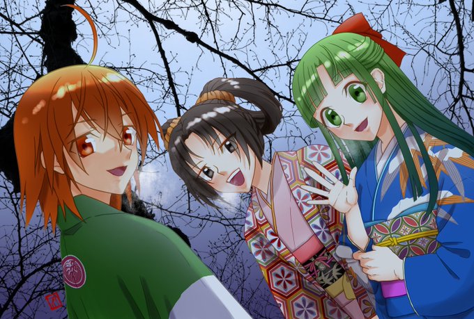 描き初め #OC #オリキャライラスト 初詣に向かう途中のイメージです 左から赤城(あかぎ)、飴与(いよ)、稚菜(わかな)と言います 今年もよろしくお願いしま~す!🐰🌄 素材使わせて頂きました pakutaso.com/20120309083pos…