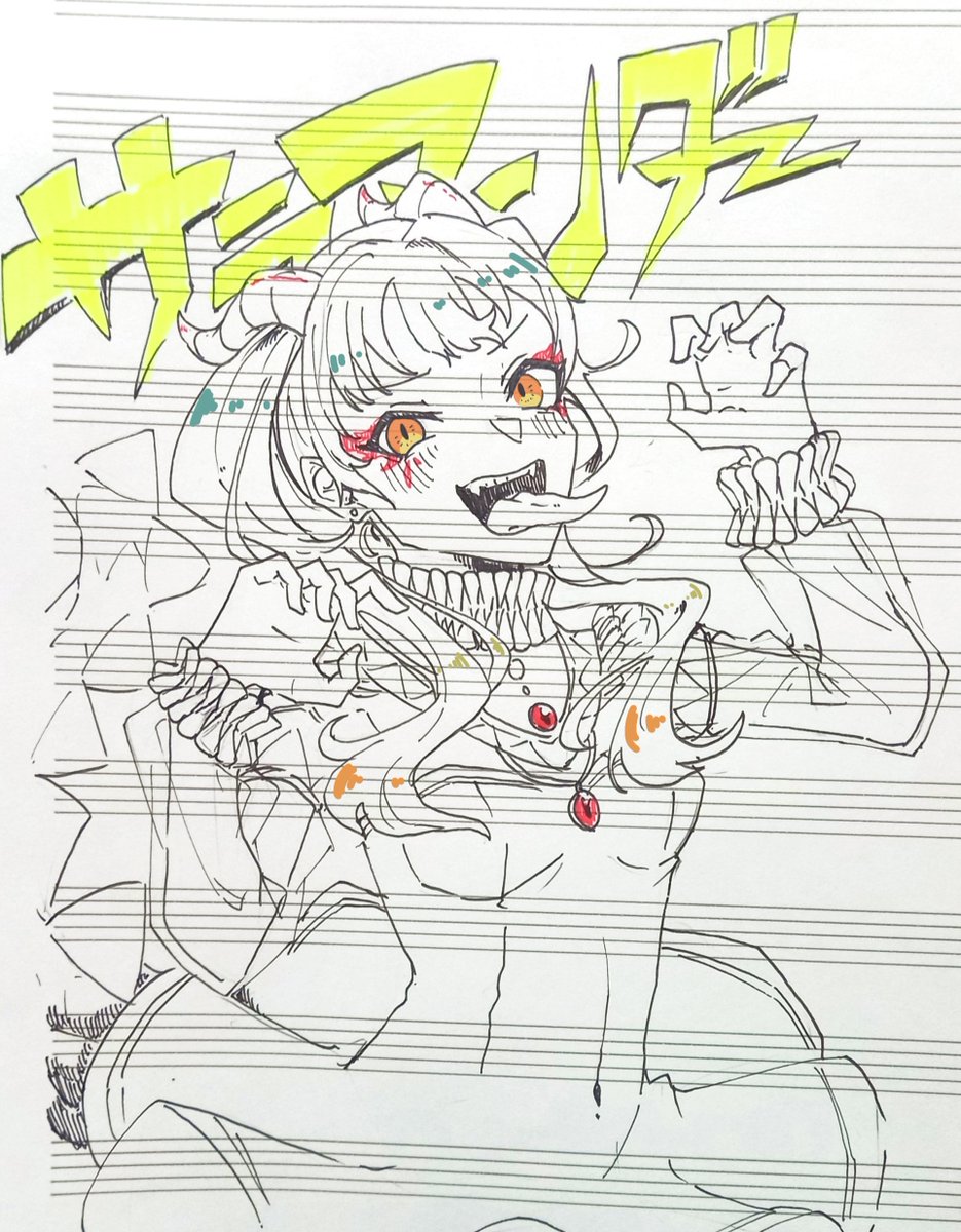 今日の無心で描いた落書き なんも考えてなくてももうちょっと構図練れるような紙絵師に成りたい