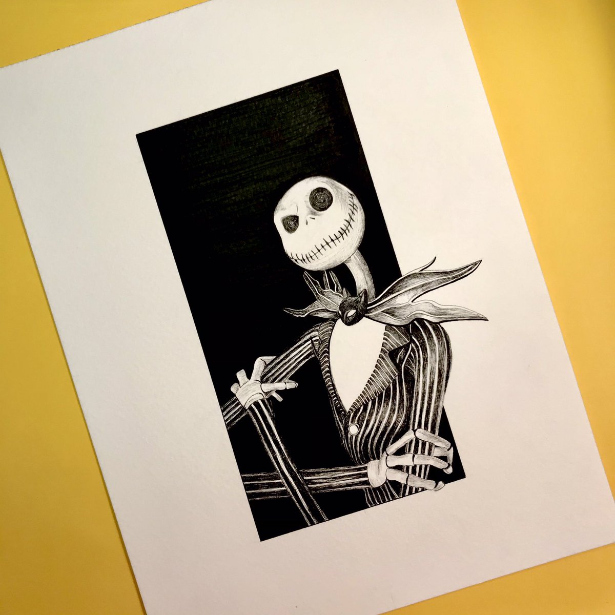 Spooky characters: Day 10 Jack skellington from The Nightmare Before Christmas (Just doing spooky characters this year. no prompt) (: #inktober2021 #JackSkellington #NightmareBeforeChristmas #TimBurton #inktober #artober #inkdrawing
