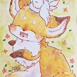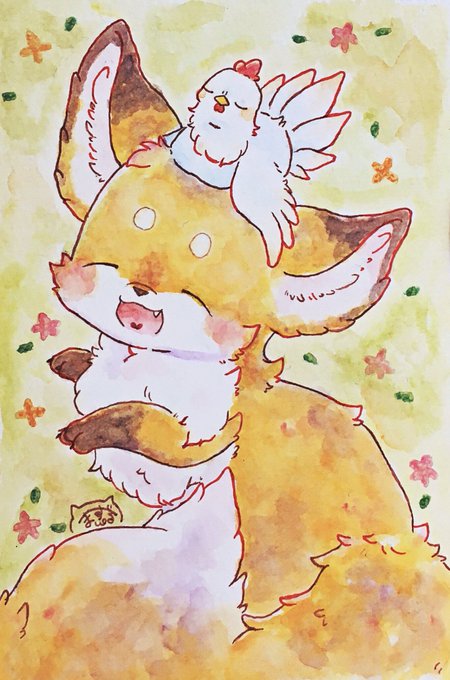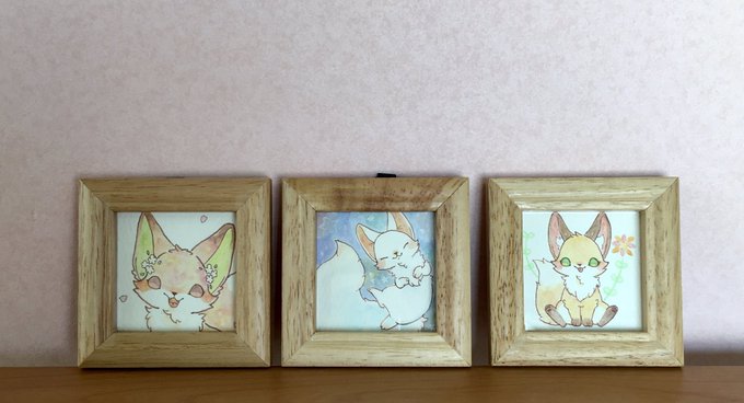5 38 ミニ原画(約5.5cm) 水彩色鉛筆で描いた小さな原画です。3種類描きました。 ・さくら狐 ・管狐 ・お座り狐 #もふもふしっぽのきつね達展4 #ミモザハイツ 22/04/06 20:46