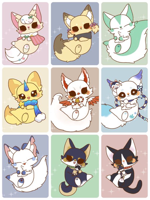 ワンコインコミッションで描かせていただいた子たちまとめ! この絵柄で色んな子を描けてとっても楽しかったです✨ ご依頼やご支援ありがとうございました🍀