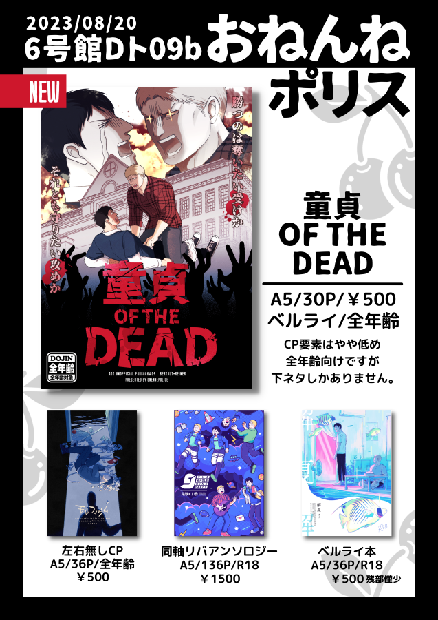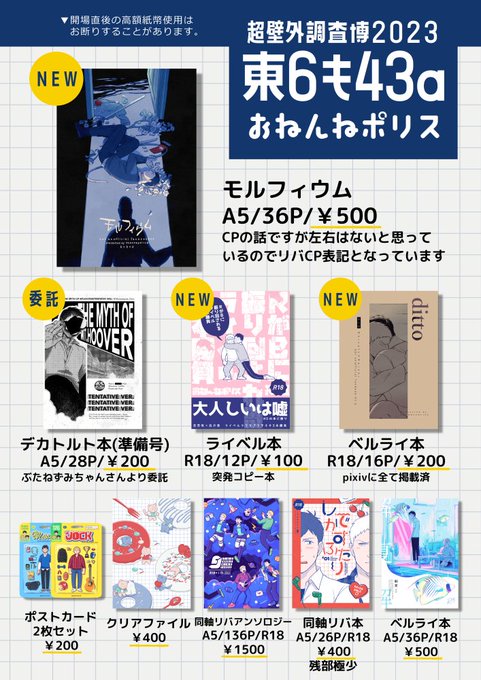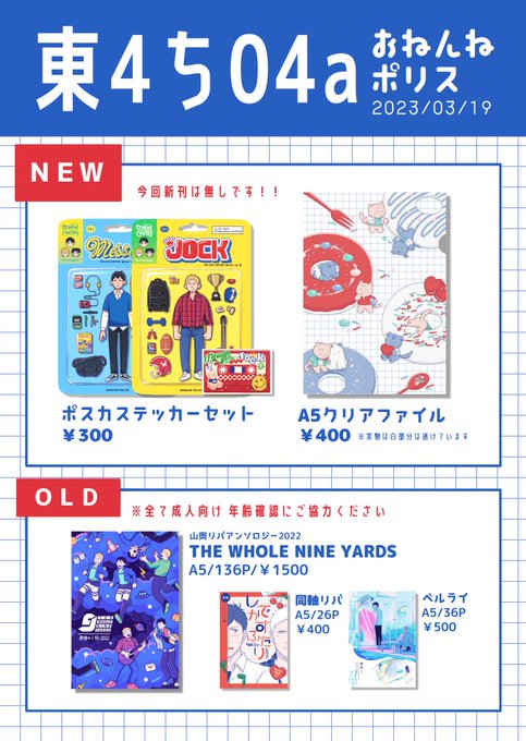 6 23 壁博38のサークルカットは嘘です新刊なし代わりにポスカなどが多分あります。アンソロと既刊もあります。 23/03/11 22:03