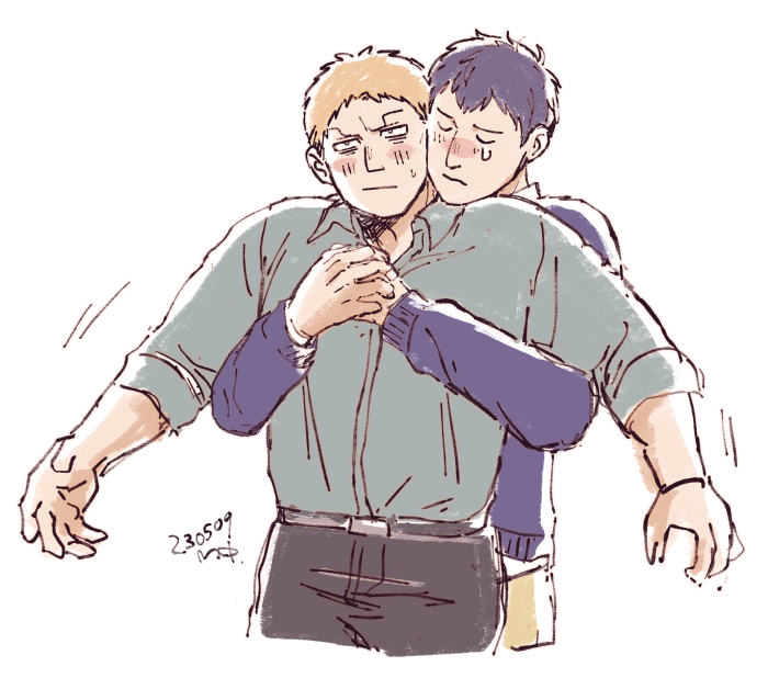 56 205 【3/21】新刊サンプル①【合同誌】 | mdok #pixiv pixiv.net/artworks/96981… ちり紙ティシュ郎(@tissue_gg)との山奥ブロマンス合同誌です。現パロ・CP要素は無しです!よろしくお願いします! 22/03/17 22:22