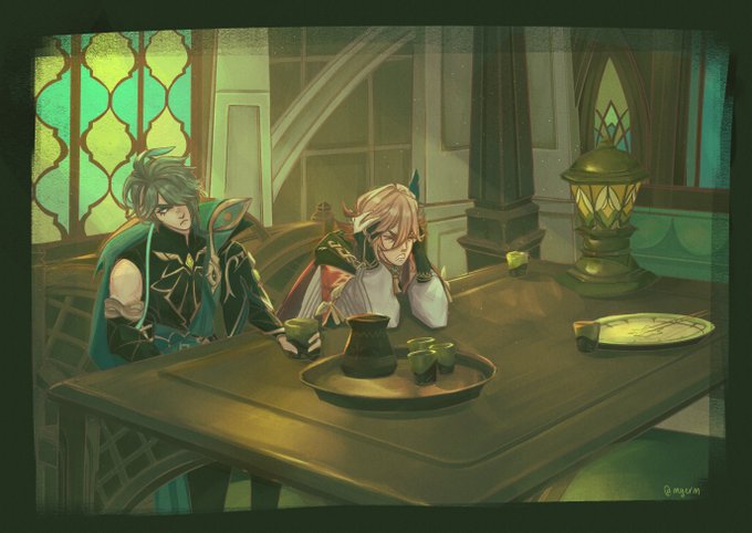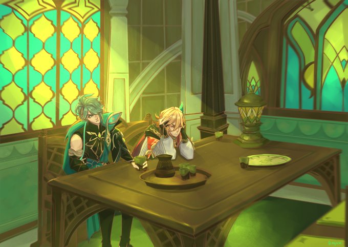 they're arguing about who'll do the dishes today . #Alhaitham #Kaveh #kavehtham #AlhaithamFanart #Genshinlmpact #genshinimpactfanart