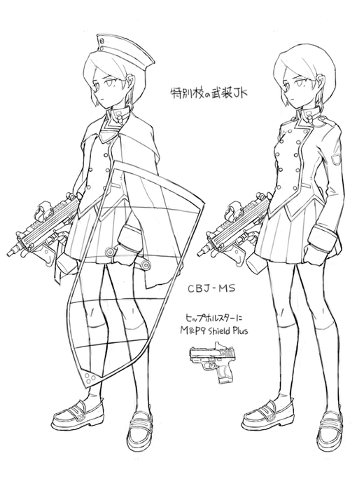 警護職的な武装JK、3人目。あともう1人描くぞ~