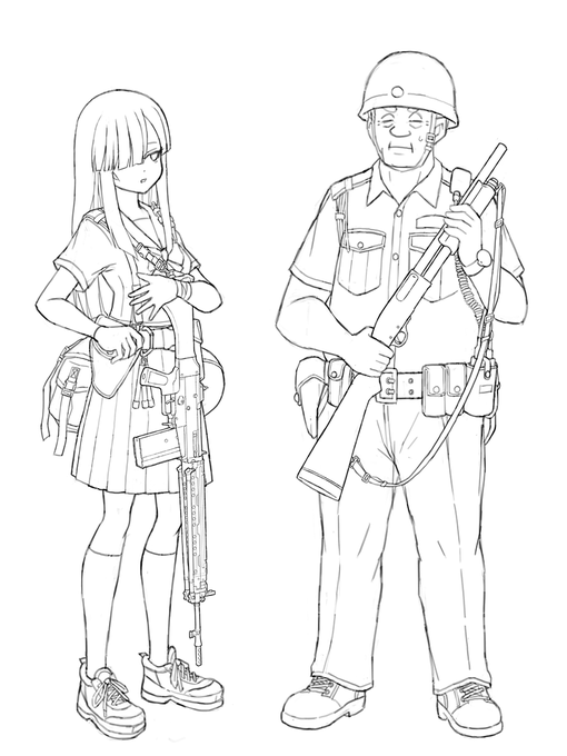今度こそ武装JKを描いてます。あと3人描きたいので完成はまだ遠い…