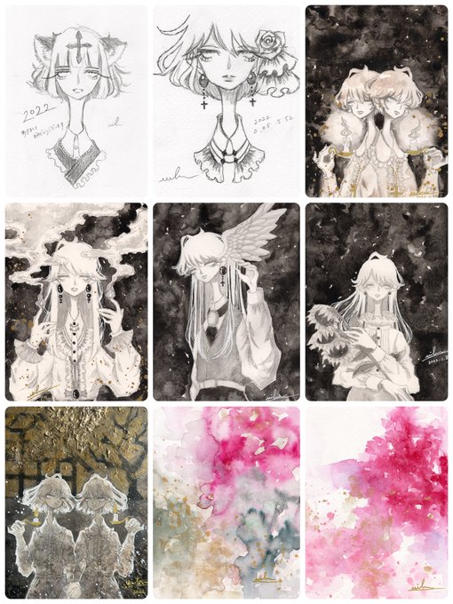 #一次創作絵師拡散フェス02 #冬の創作クラスタフォロー祭り 素敵な企画参加させていただきます 透明水彩を使って瞳のない子の絵や抽象画を描きながら詩や散文も書いています 手製本でZINE制作をしたりジャンクジャーナル制作もしています どうぞよろしくお願いいたします