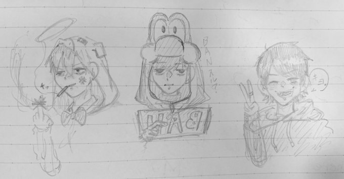 @kuuma_hoseki 全然創造キャラとかでは無いのですがきび助さんのおかげでヒプマイに再熱出来たのでその感謝として描きました!! きび助さんの声や動画、写真を見る度元気をもらってます! いつもありがとうございます!! ((盧笙せんは描けませんでした))