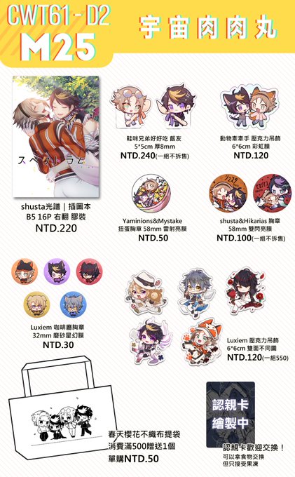 25 76 【CWT62宣傳車】 兩日都在I23!歡迎來找我玩😘 ◇中午12點前不收大鈔,請自備零錢 ◇認親卡可簽名屬名 ◇光譜本、不織布提袋數量不多售完不再加印 ⚠️燙色拍立得套組目前趕不上北部場(高雄場應該會有) 22/12/08 01:43