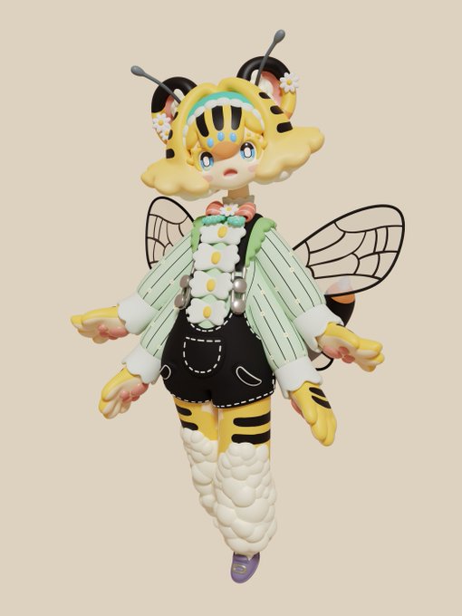 80 607 Tiger-bee boy 🐯🐝 Based on a wonderful design by @kanekoshake 💛💛💛 #Blender3d #b3d 22/01/12 06:24