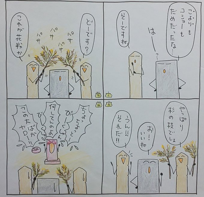 1 7 杉の枝で試しても、花粉症がどんなものなのか…分からなかった墓石さんなのです😂 #イラスト #漫画 #4コマ漫画 23/03/13 19:51