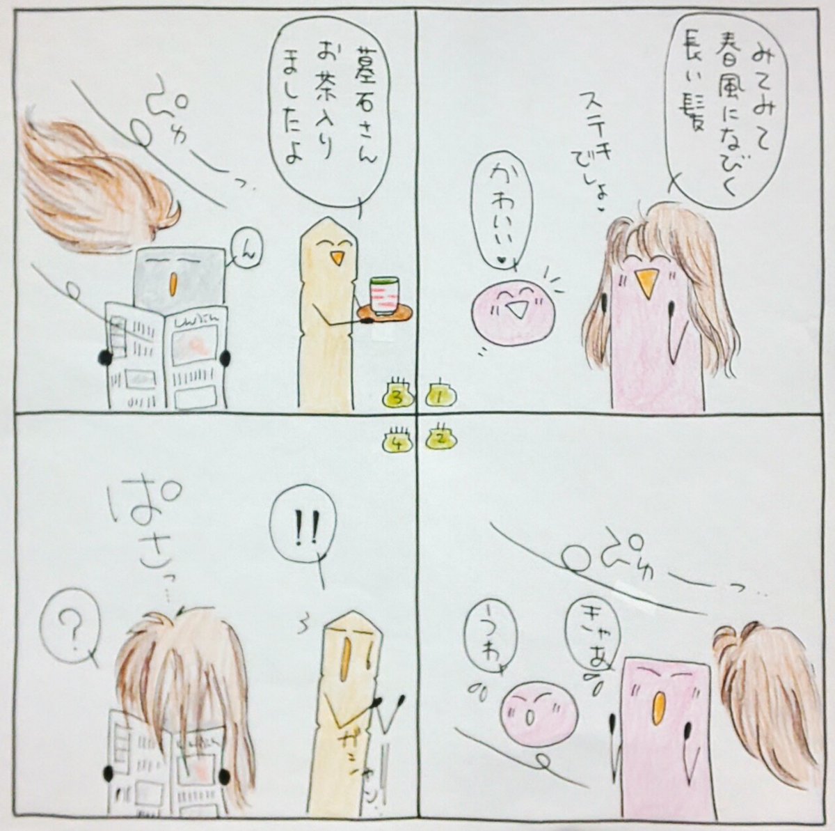 ロングヘアーの みかげちゃん可愛いかも🎵春風は、イタズラが好きなんだな~😂 #漫画 #4コマ漫画 #イラスト