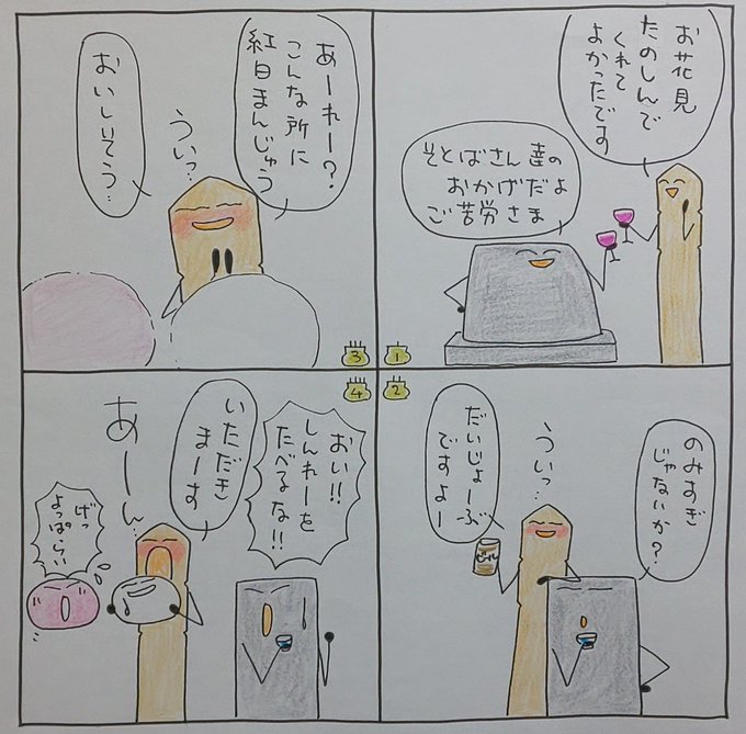 0 5 🌸桜餅 美味しいね🎵 楽しみにしていた「プレミアムおはぎ」を食べそこねていた事に気付いた、しんれーさん😱 #漫画 #4コマ漫画 #イラスト #お花見 23/03/30 19:57