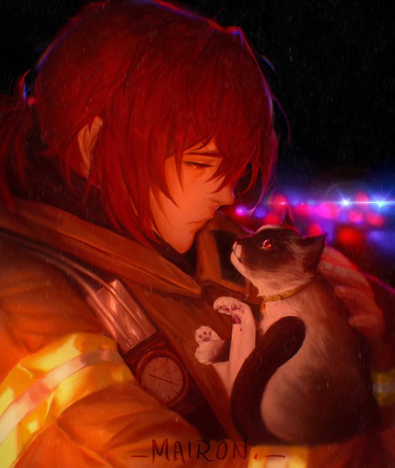 part two of cats being saved by fireman diluc :) #原神 #diluc #genshinimpact #genshinfanart #dilucfanart