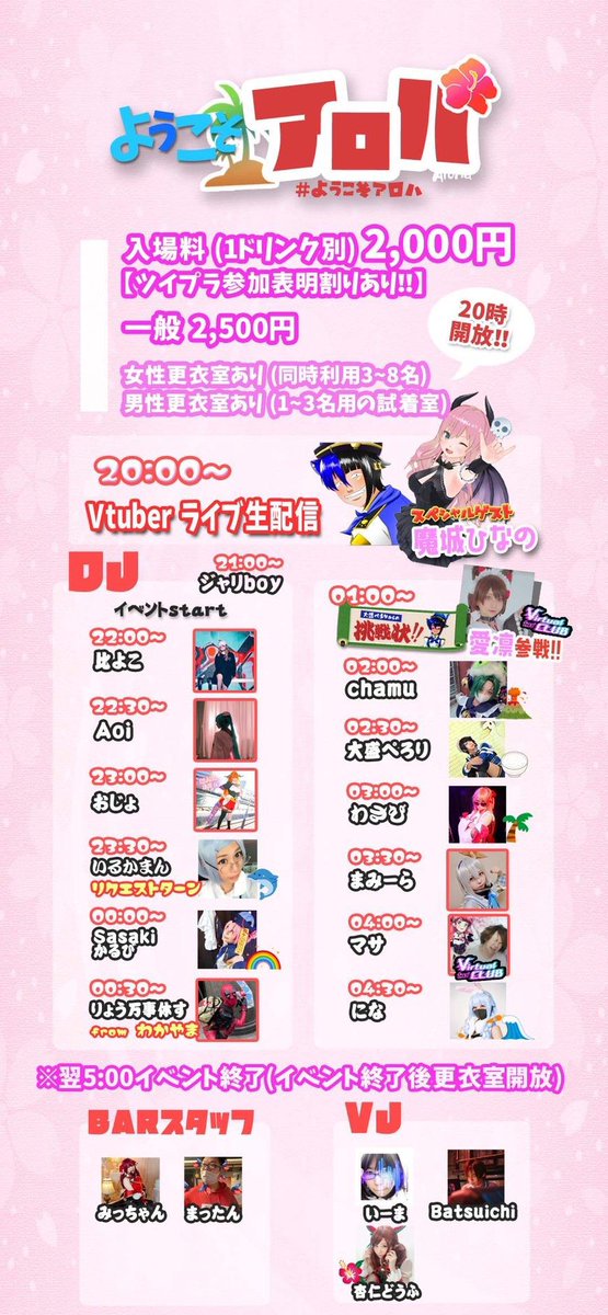 #ようこそアロハ 遅くなりましたがありがとうございました!!✨ 会場着いてから帰るまでずっと楽しいイベントでした!(⸝⸝- -⸝⸝) DJで盛り上がっていただけたり、たくさんお話出来たり、新しく繋がれた方もたくさんいたりでほんとに嬉しかったです! ありがとうございました(⋆ᴗ͈ˬᴗ͈)”