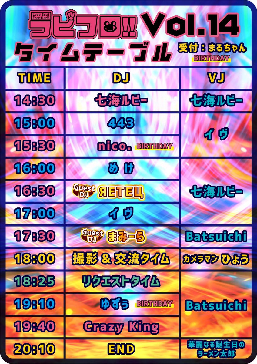 12 43 🐰 #ラビフロ 🐸 オープンからラストまで大盛り上がりでめちゃめちゃ楽しかったです!! 沢山お話出来て皆とわいわいできて最高でした✨ 久々にセトリもあげます🙇🏻♀️ 本当に沢山のご来場ありがとうございました(՞ ܸ. .ܸ՞)" 2.3枚目📸(@vtec_hyo) 22/10/04 19:02
